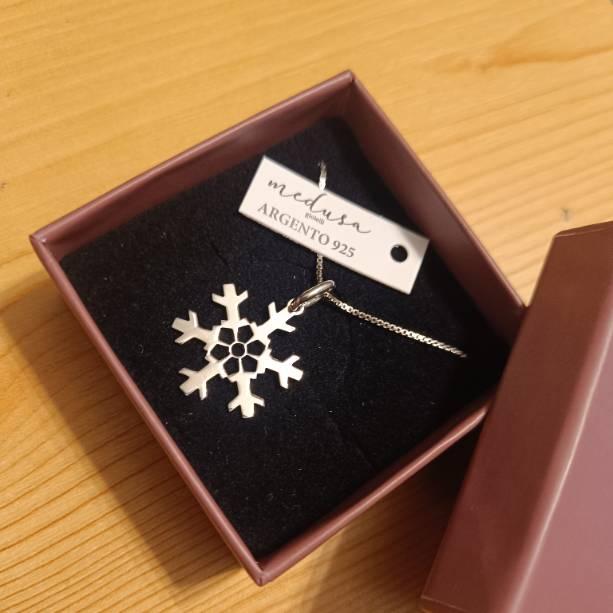 Catenina con Ciondolo Fiocco di Neve Grande in Argento rodiato